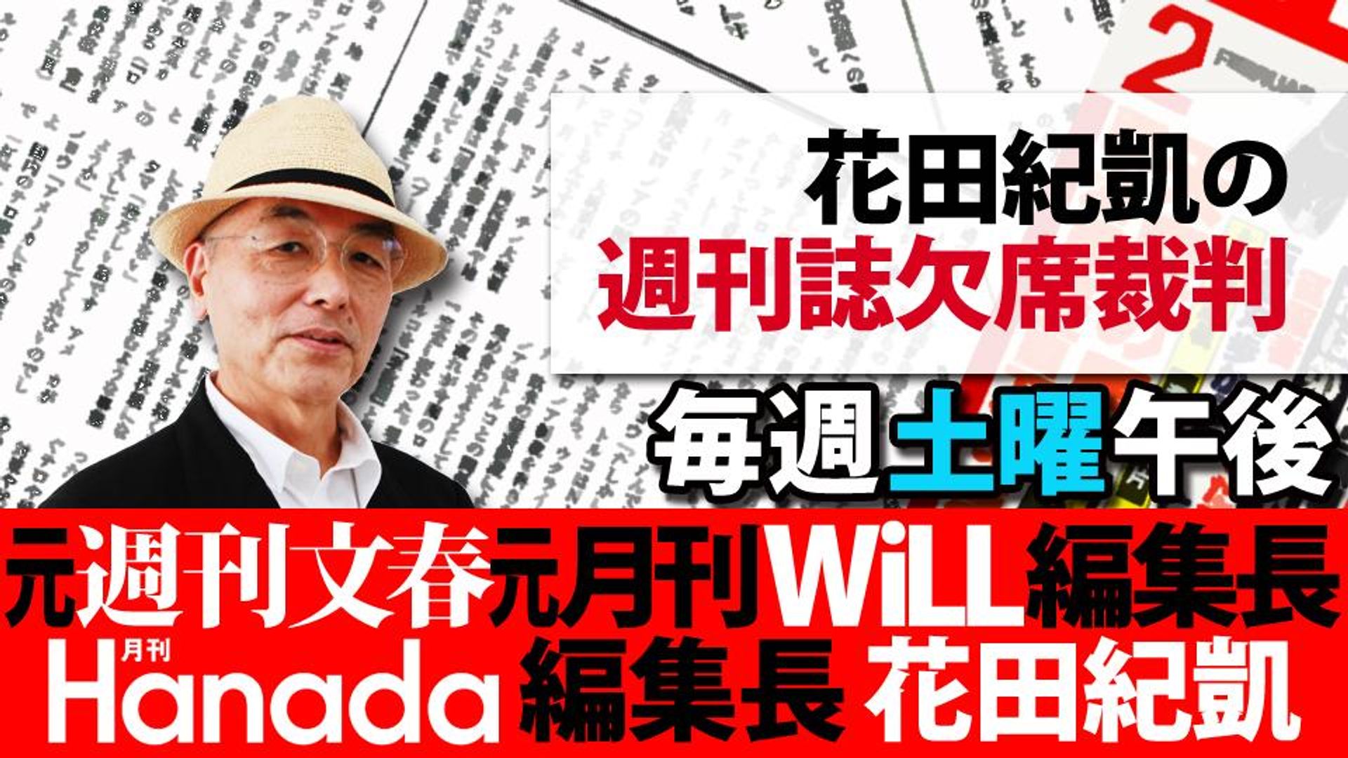 No.1!保守系言論誌『月刊Hanada』の編集長:花田紀凱が、最新の”あの”ネタを、各週刊誌からピックアップ!多くの言論系人気番組をプロデュースするオンザボード代表:和田憲治とともに、日本一硬派(ちょっと右寄りw)でフリーダム?な政治談義を、毎週ゆる~くお届けしています。